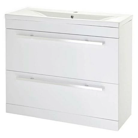 A minimalist 1000mm floor standing vanity unit with quality stylish mid edge’ ceramic basin top, make the most of your bathroom with our practical and attractive modern white gloss furniture options.Â