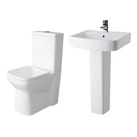 Nuie – Ambrose 4 Piece Bathroom Suite – Short Projection CC Toilet & 1TH Basin with Pedestal – 2 x Basin Size Options