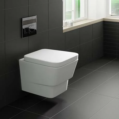 The luxury Cambria wall hung toilet with soft close seat and dual flush concealed WC cistern from Nuie. The Cambria wall hung toilet has been manufactured from high grade vitreous china with a fabulous smooth white gloss finish, the Cambria range of bathroom sanitary ware is characterised by its modern soft square design. Pan comes with a high grade urea soft close seat.