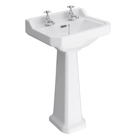 The classical Carlton traditional low level bathroom suite, ideal for creating a luxury period looking bathroom, includes a 2 Tap Hole basin and pedestal set and low level traditional WC pan & cistern. Manufactured from high grade vitreous china in a beautiful white gloss finish. Supplied with a Traditional ceramic cistern lever and white wooden toilet seat. Create your dream traditional bathroom with the Carlton toilet and basin suite.
