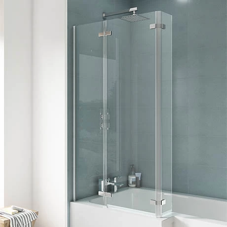 The 1400 square hinged bath screen, designed to fit L shaped shower baths. Characterised by it’s clean, simple lines, this stunning square hinged bath screen is perfect for preventing splashes and spills from damaging bathroom fixtures. Bath screen folds for gaining access in and out of the bath or for cleaning purposes.