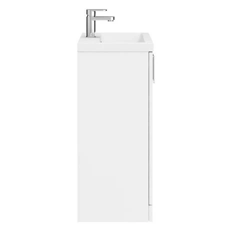 Elevate your bathroom with the sleek, square lines of this Pallas 600 White Vanity Unit. This freestanding vanity unit is 605mm wide and offers a practical storage solution with ample room for your toiletries. Say goodbye to accidental slamming with the soft close doors on this basin vanity unit – they also have slim chrome handles for added sheen. The ceramic basin is durable and easy to clean with its smooth surface and white gloss finish that will accentuate a modern style.