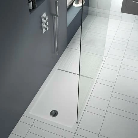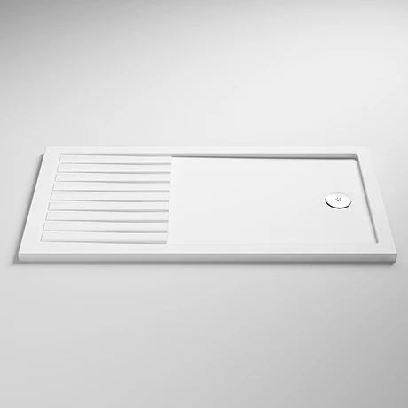 Nuie Rectangular 40mm Low Profile ABS Capped Acrylic Walk-In Shower Tray with Drying Area