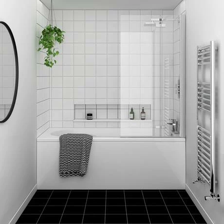 The bath screen has been constructed from 5mm toughened safety glass with a satin chrome finished hinge. Prevent splashes and spills from the shower causing water damage to bathroom fixtures and fittings. Refresh your bathrooms look with one of our quality shower baths. Tap holes to be drilled to suit by installer. Bath panels & waste not included.