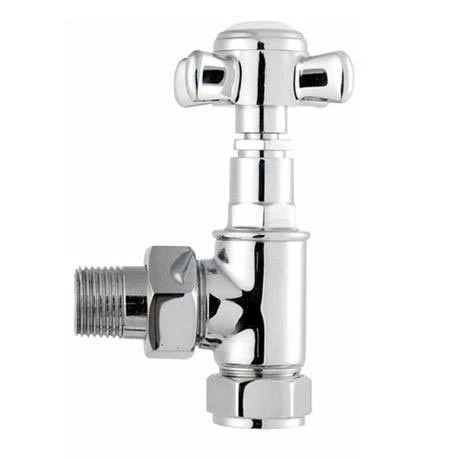 Pair of matching angled traditional chrome crosshead radiator valves. Designed to complement our range of heated towel rails. Beautifully engineered to integrate into any traditional bathroom.