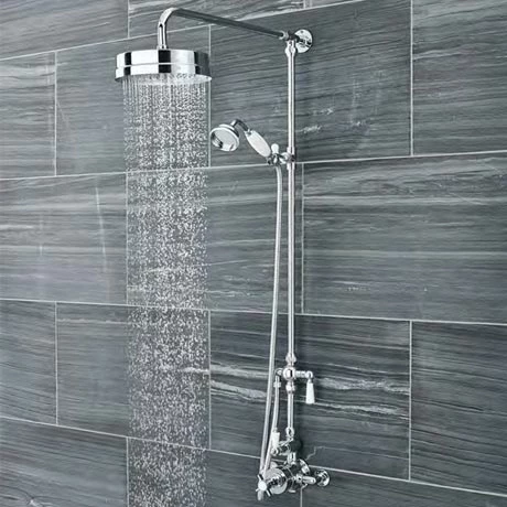 A classic Luxury Rigid Riser Kit with Exposed shower valve. Complete the look of your bathroom with a Designer rigid riser shower kit. It has a built-in diverter so you can switch between the fixed head or hand held shower. All kits comprise of exposed pipe work including a sliding rail, shower hose and shower head. Combined with the supplied exposed shower valve this rigid riser shower kit will enhance the appearance of any bathroom.