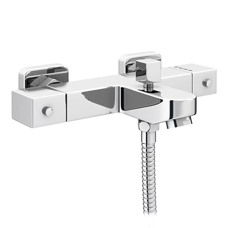 Nuie Wall Mounted Square Thermostatic Bath/Shower Mixer Valve – Bottom Outlet – Chrome – VBS005