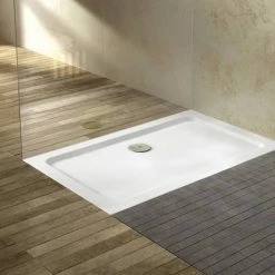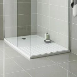 Nuie Rectangular 40mm ABS Capped Acrylic Walk-In Shower Tray With Drying Area